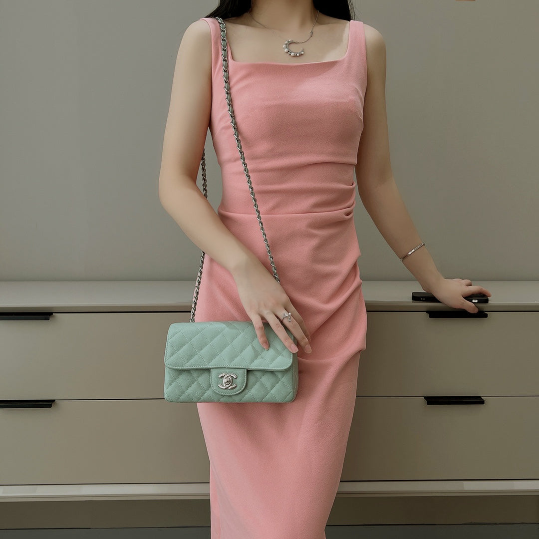 CH MINI CLASSIC HANDBAG 20 Small Grained Calfskin Matcha Green