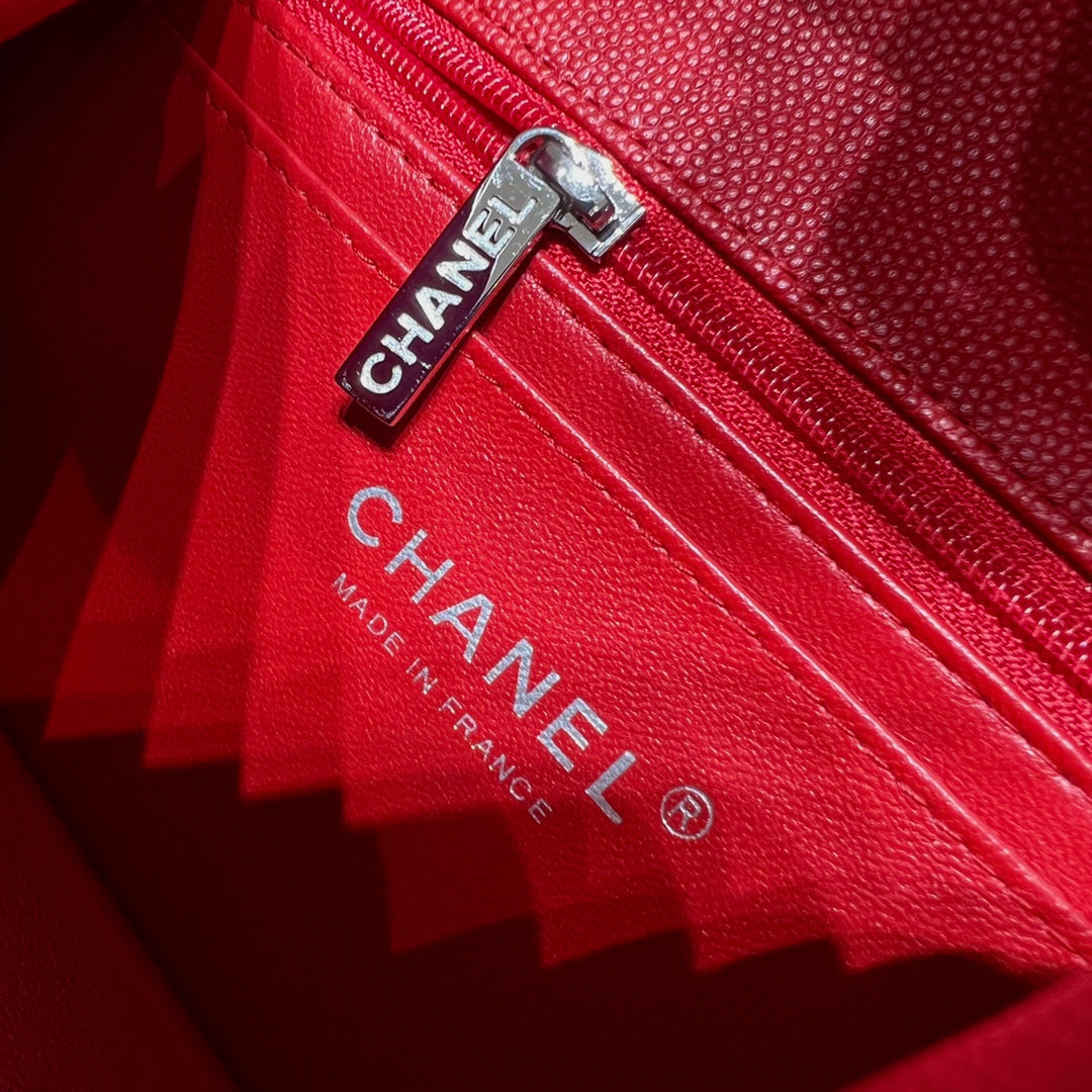 CH MINI CLASSIC HANDBAG 20 Small Grained Calfskin V Pattern Red