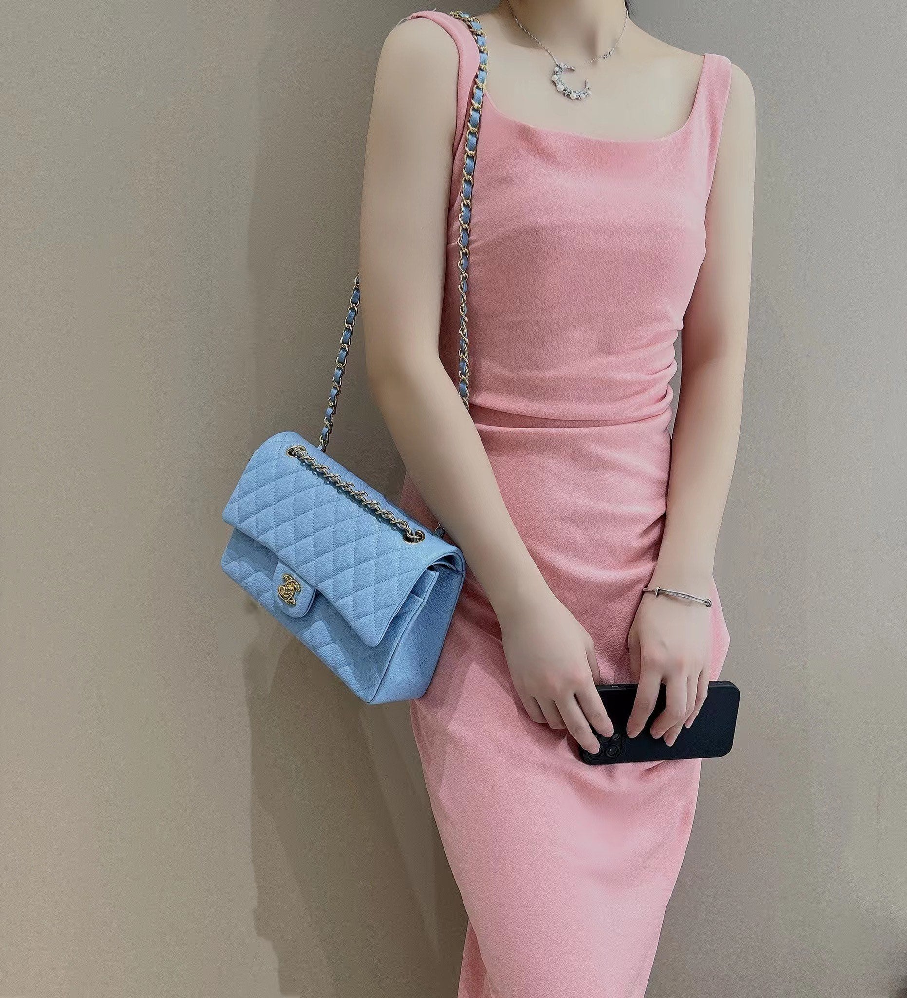 CH CLASSIC 11.12 HANDBAG 25.5 Grained Calfskin Blue