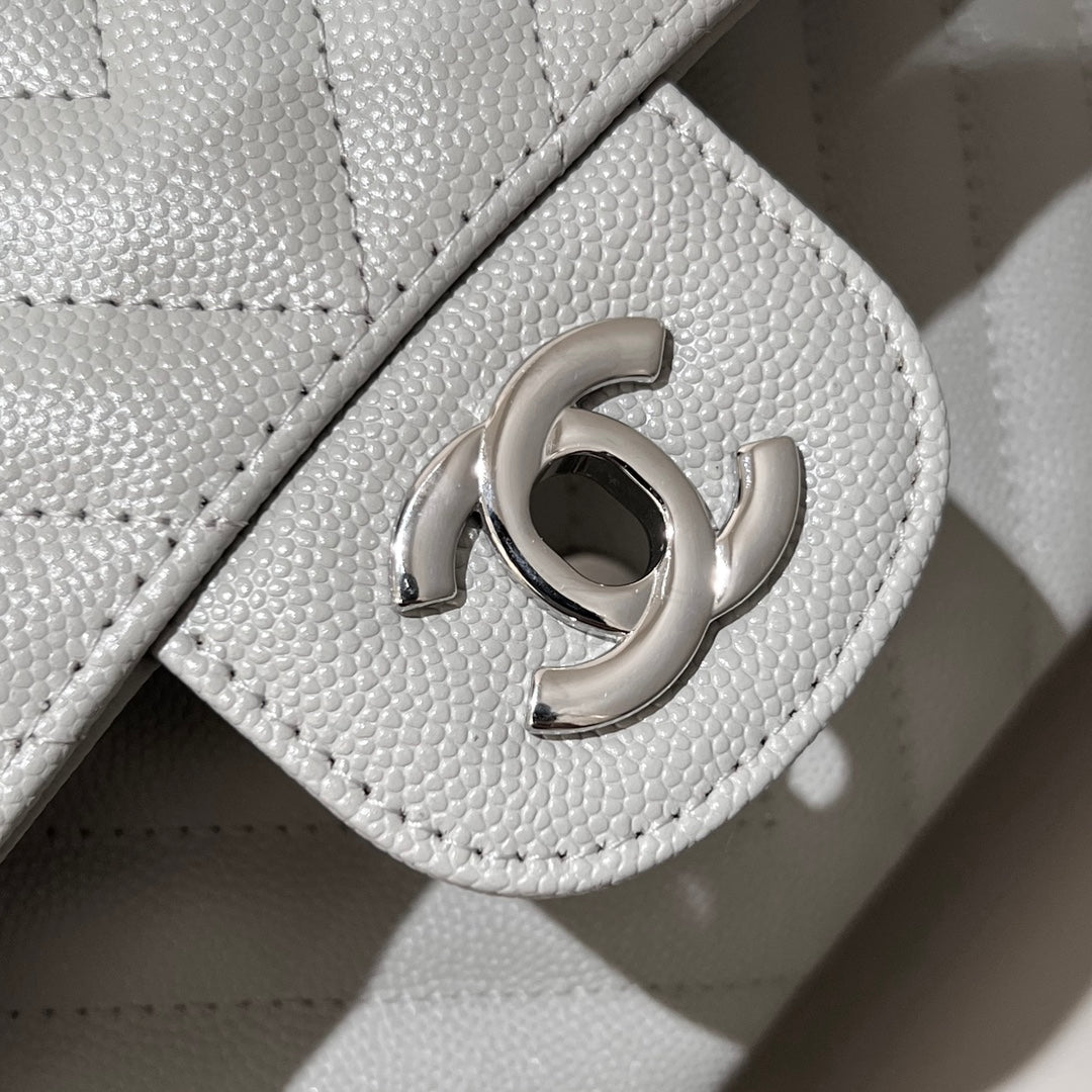 CH CLASSIC 11.12 HANDBAG 25.5 Small Grained Calfskin V Pattern Elephant Gray