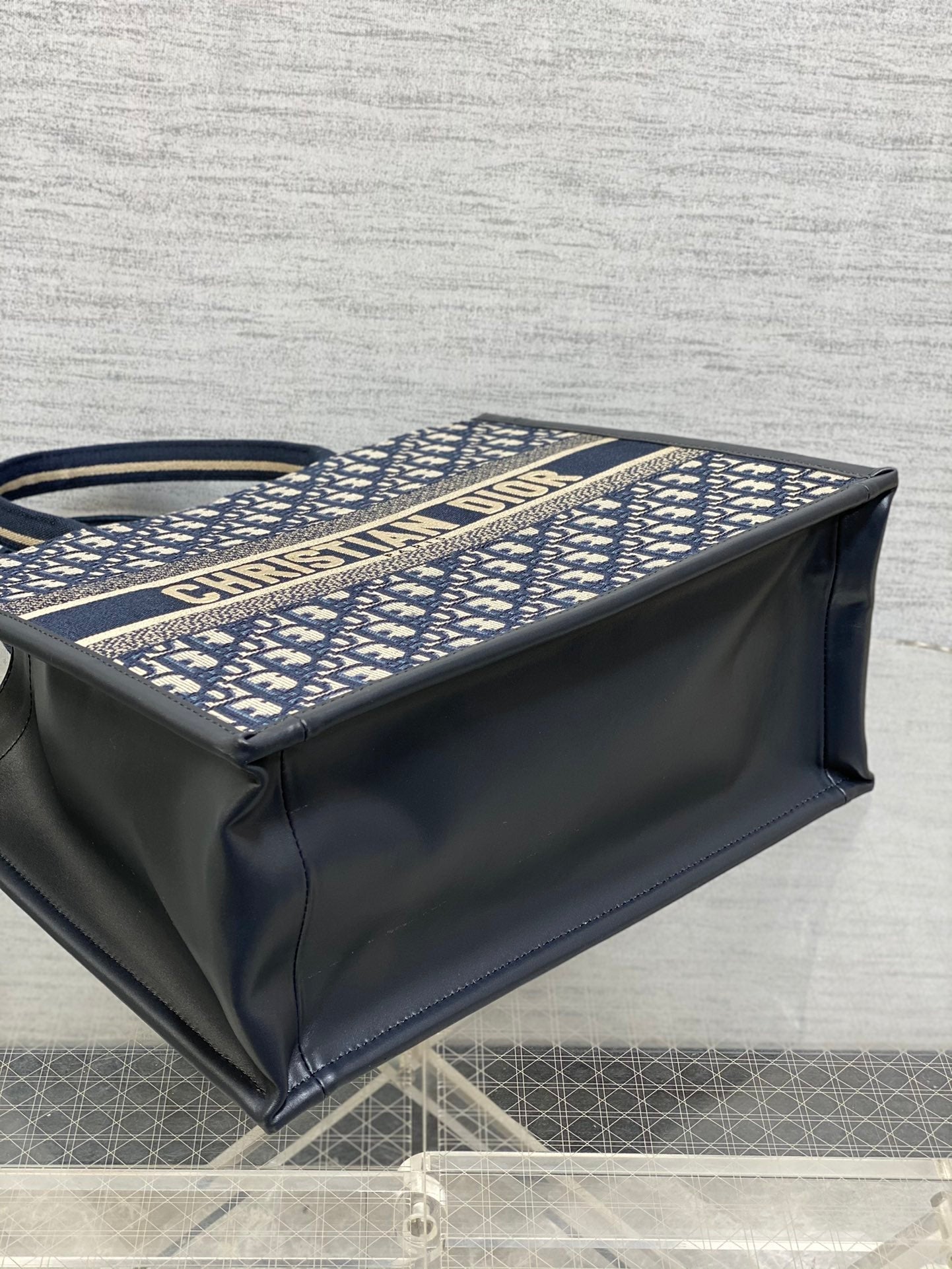 DO Book Tote Bag Blue Di0r Oblique Embroidery and Calfskin