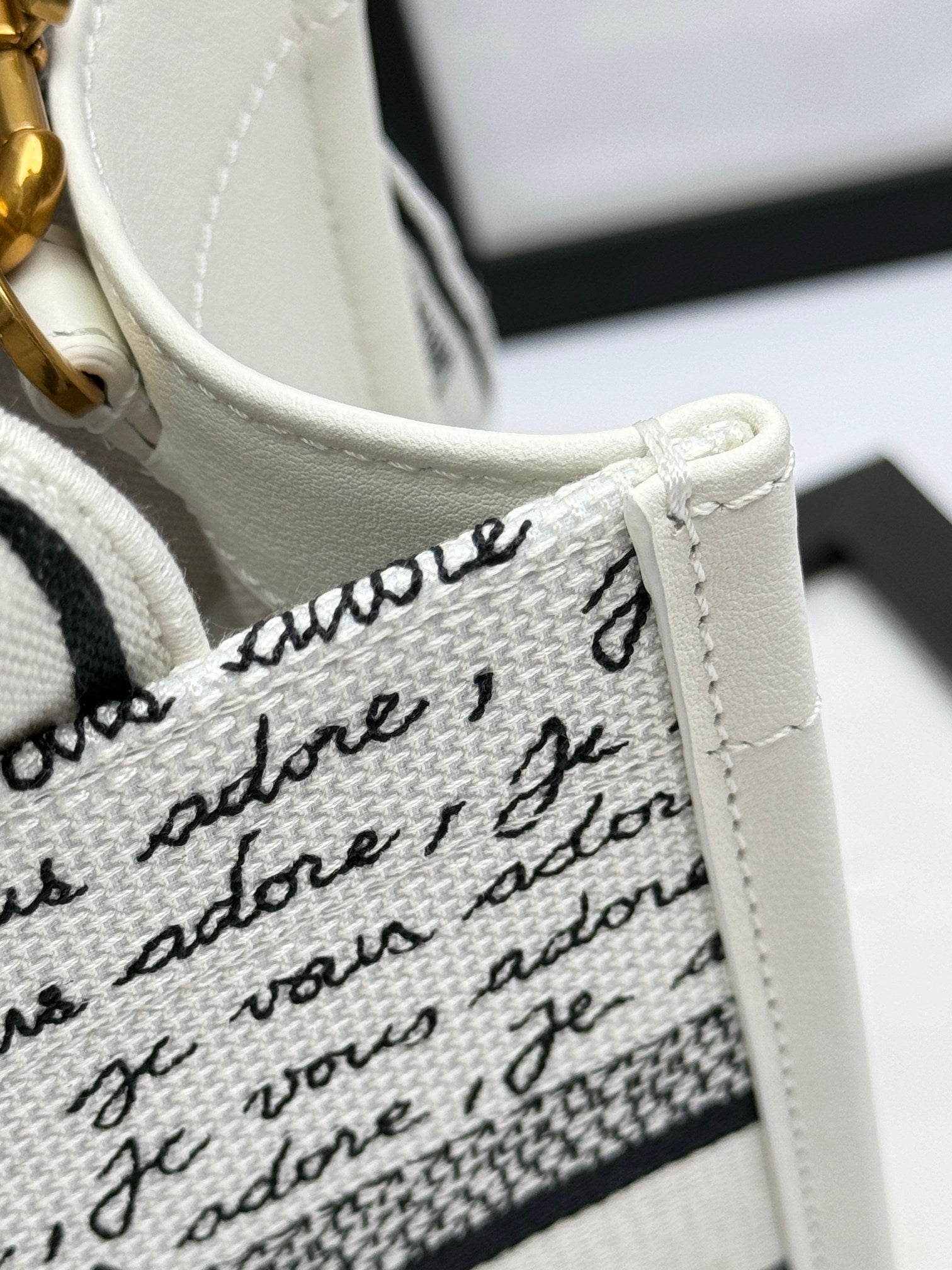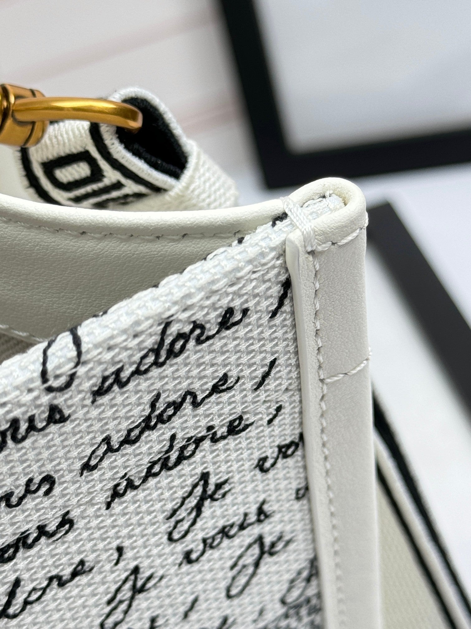DO Dioramour Small Book Tote White Embroidery with Black and Red Je Vous Adore Motif and