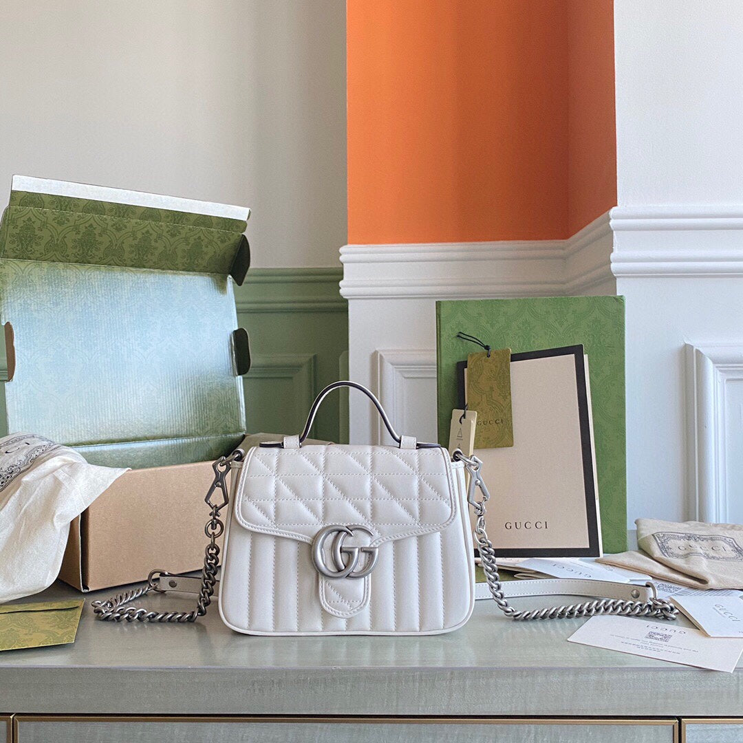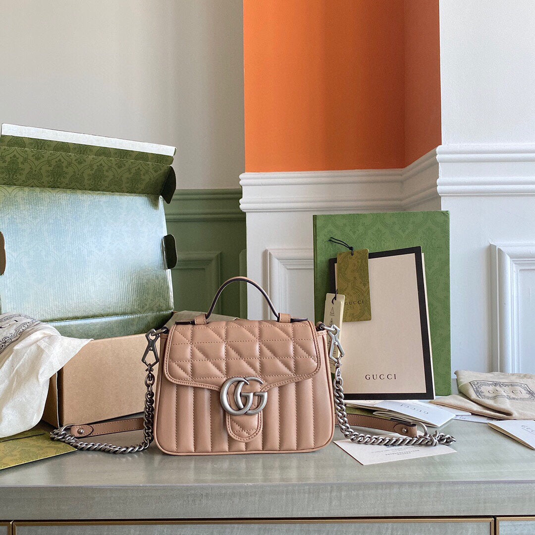 GC Marmont matelassé chevron leather Black / White / Dusty Pink / Gray Blue