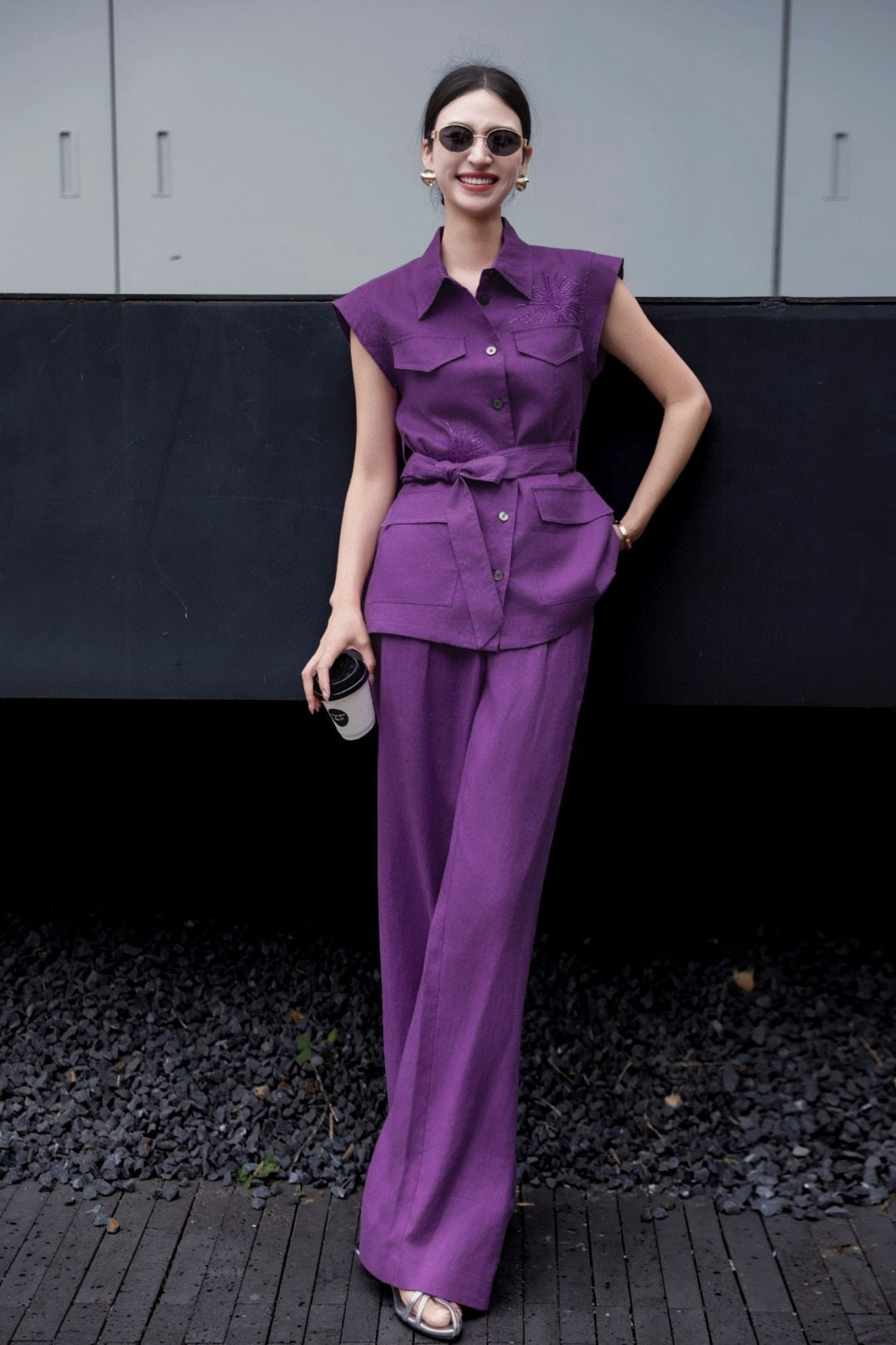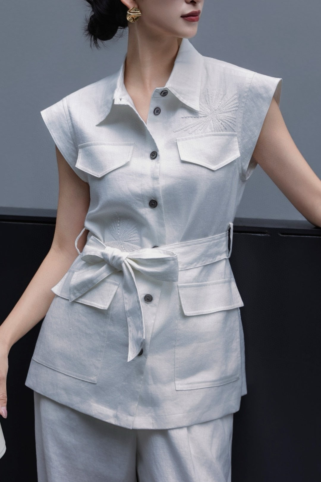 Loro 25ss linen embroidered suit