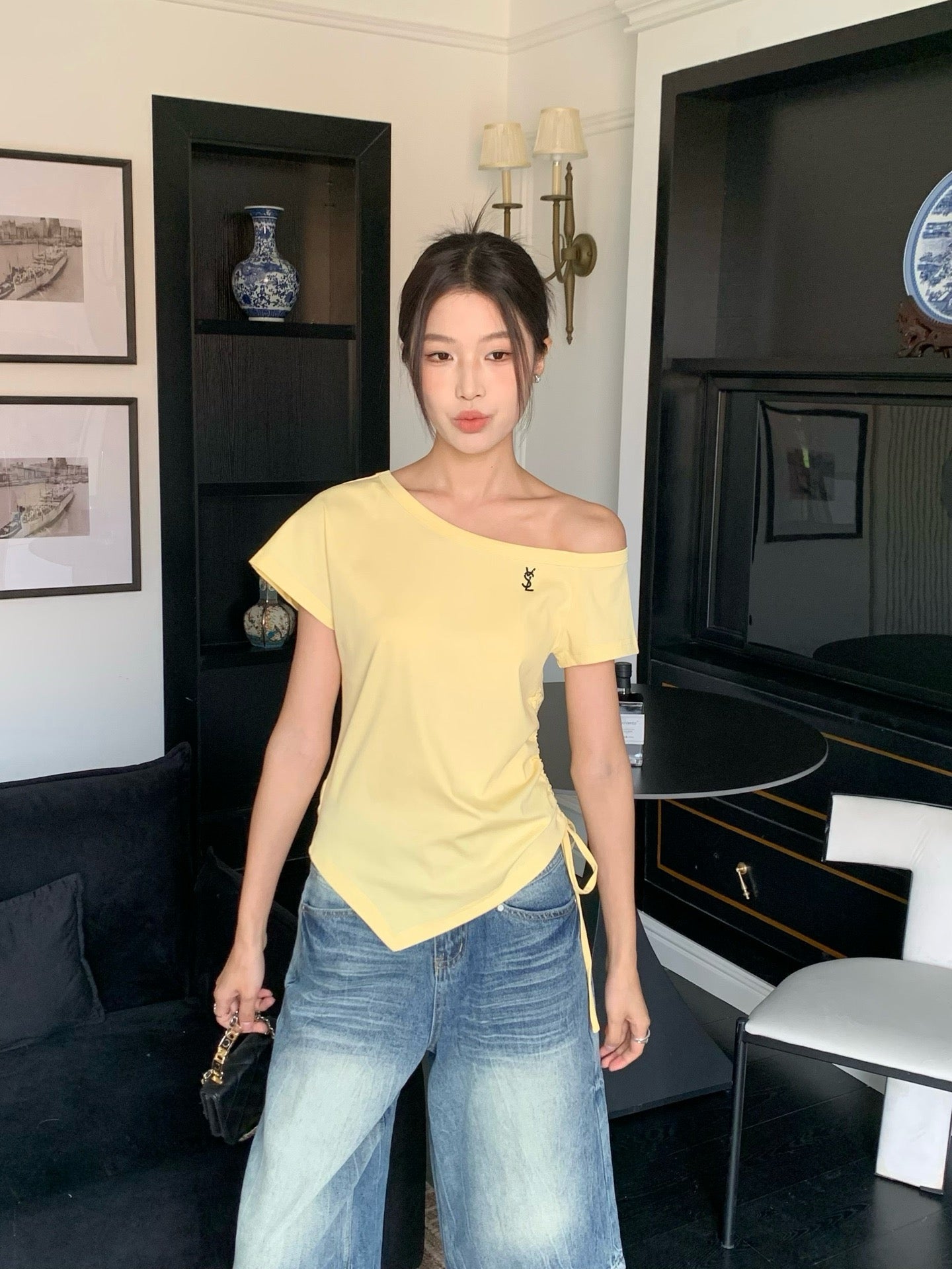 Saint lau 25ss off-shoulder shirt